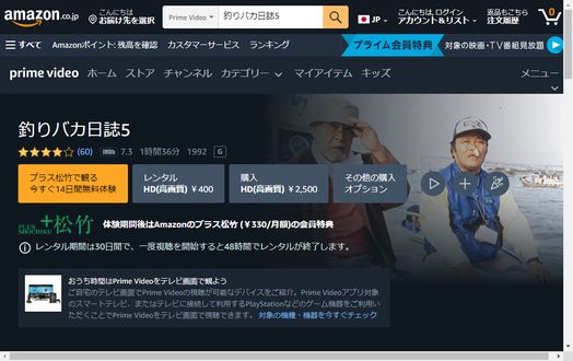 人気の動画配信サービスのAmazonプライムビデオで映画「釣りバカ日誌5」の映画がフルで視聴できるか調査しました。
