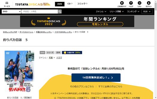 そして、映画「釣りバカ日誌5」はツタヤディスカスで配信しているので、無料でDVDレンタルが可能です。