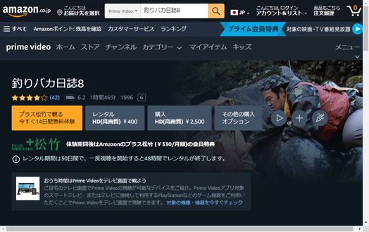 人気の動画配信サービスのAmazonプライムビデオで映画「釣りバカ日誌8」の映画がフルで視聴できるか調査しました。