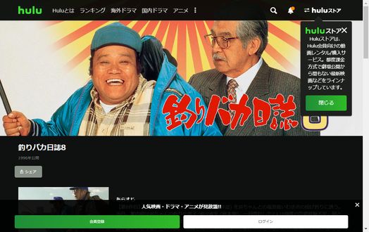 Huluでは、ブラウザでもアプリでも無料で視聴可能なので家でも外でも「釣りバカ日誌8」の動画をフルで楽しむことができます!