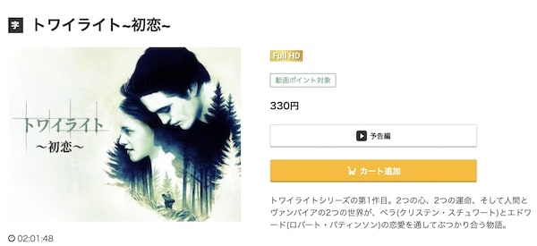 映画「トワイライト〜初恋〜」は330円でレンタル配信してるので、フルで視聴できます。