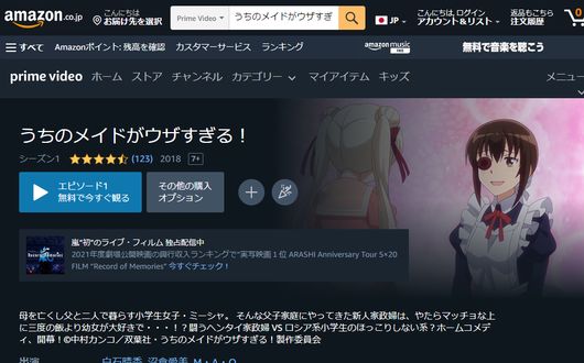 Amazonプライムはアニメ「うちのメイドがウザすぎる!」は無料で視聴できませんが、関連動画やシリーズ作品には見放題で配信されているものもあります。