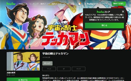 Huluでアニメ「宇宙の騎士テッカマン」の動画を全話視聴