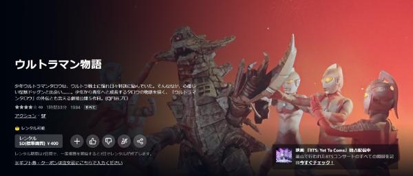 しかし、映画「ウルトラマン物語(ストーリー)」はレンタル作品のため、400円かかってしまい無料視聴することができません。
