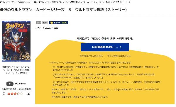 そして、映画「ウルトラマン物語(ストーリー)」はツタヤディスカスで配信しているので、無料でDVDレンタルが可能です。