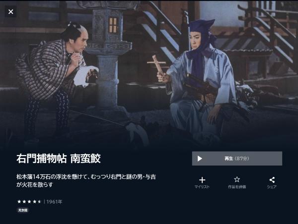 • 映画「右門捕物帖 南蛮鮫」がフルで視聴可能。