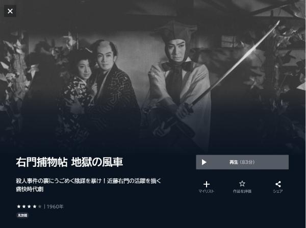 U-NEXTで映画「右門捕物帖 地獄の風車」の動画をフル視聴