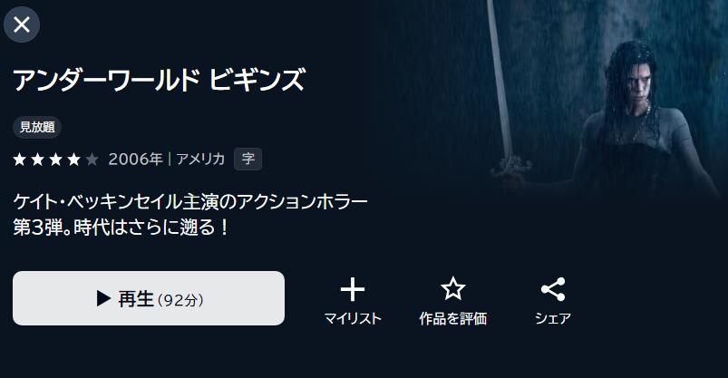 また、映画「アンダーワールド ビギンズ」のシリーズ作品の映画もフルで無料視聴が可能です。
