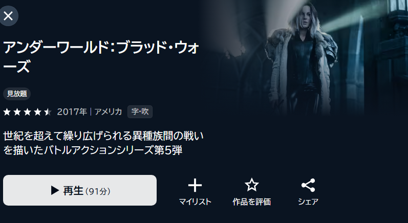 • 映画「アンダーワールド ブラッド・ウォーズ」がフル視聴可能。