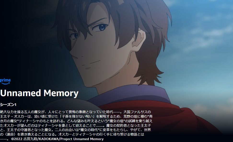 人気の動画配信サイトAmazonプライムでも、アニメ「Unnamed Memory Act.2」を視聴できるか調査しました。