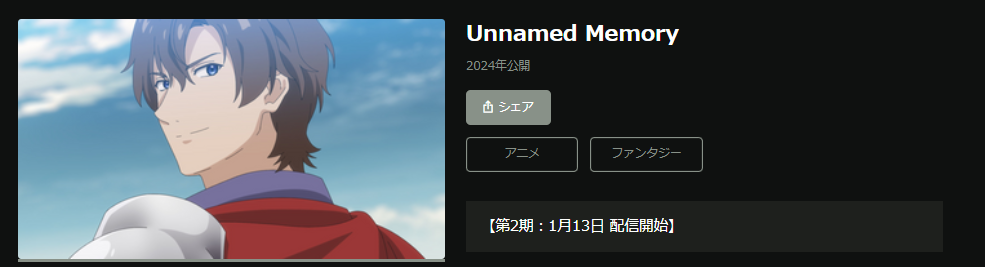 - 「Unnamed Memory Act.2」が全話見放題で視聴可能