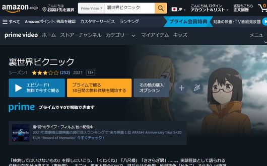 人気の動画配信サイトAmazonプライムでも、アニメ「裏世界ピクニック」を視聴できるか調査しました。