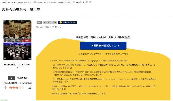 そして、映画「裏社会の男たち 第二章」はツタヤディスカスで配信しているので、無料でDVDレンタルが可能です。