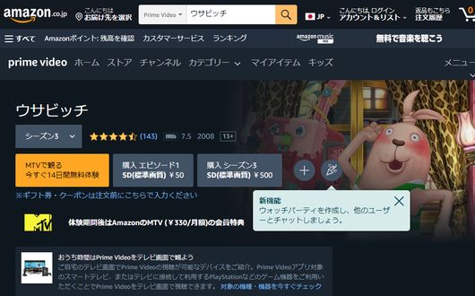 Amazonプライムはアニメ「ウサビッチ シーズン3」は無料で視聴できませんが、関連動画やシリーズ作品には見放題で配信されているものもあります。
