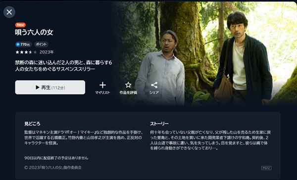 お試し期間がないので料金は発生しますが、ぜひ「唄う六人の女」を視聴するために登録してみてくださいね。
