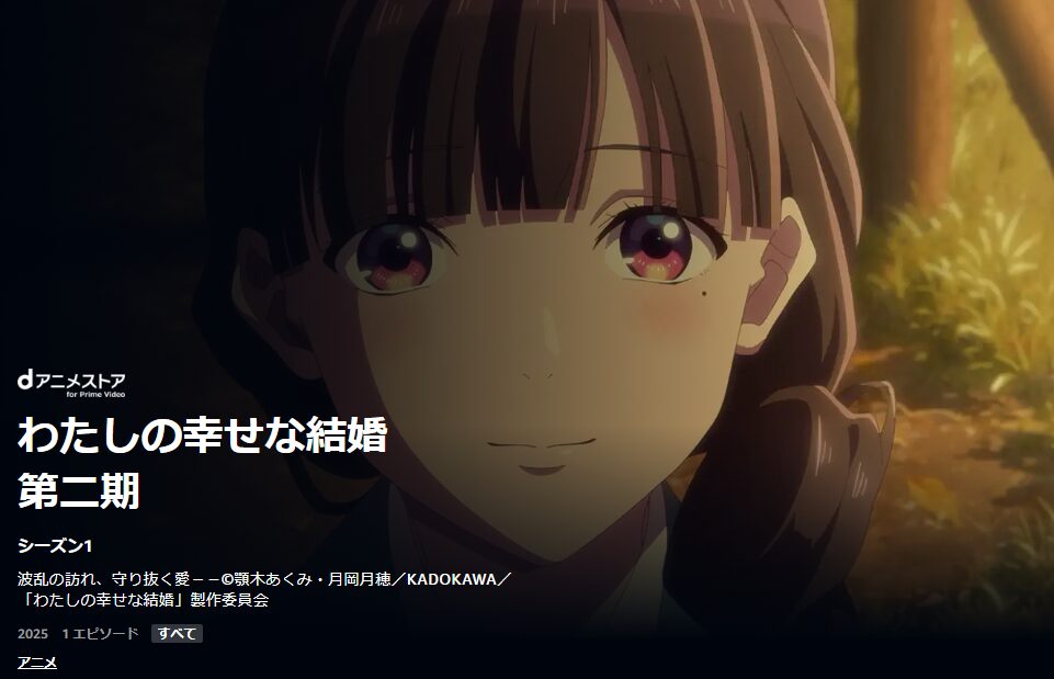 人気の動画配信サイトAmazonプライムでも、アニメ「わたしの幸せな結婚 2期」を視聴できるか調査しました。