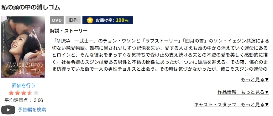TSUTAYA DISCASで映画「私の頭の中の消しゴム」をDVDレンタルしてフル視聴