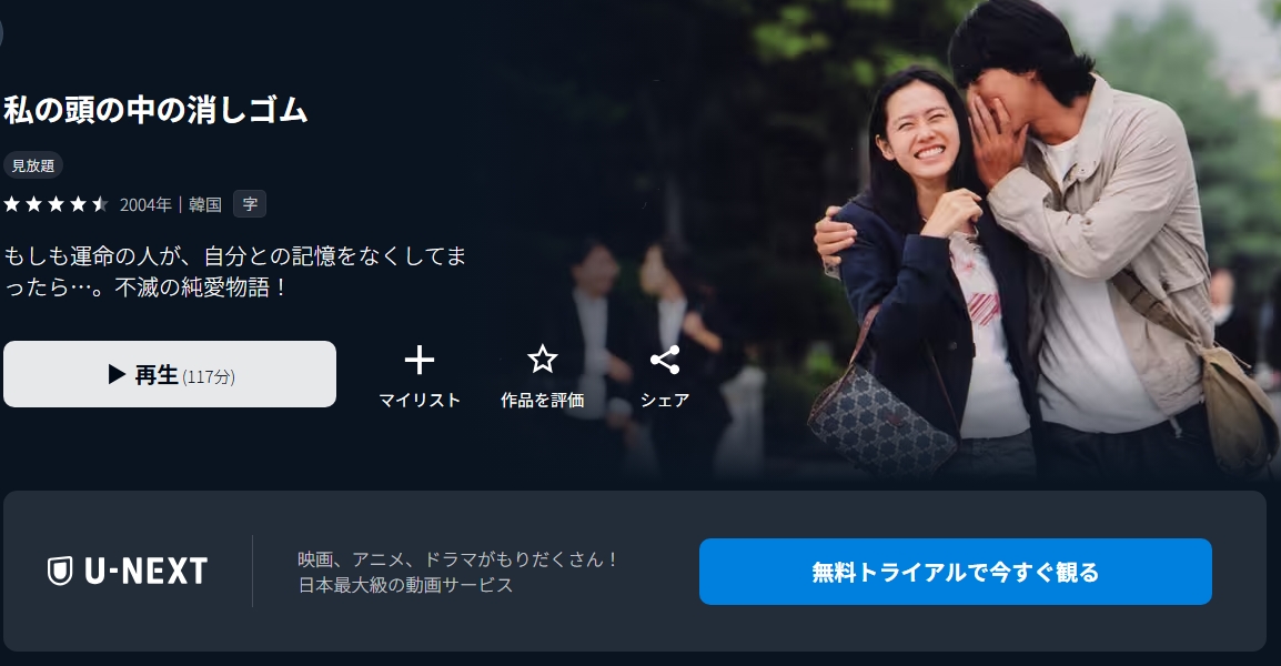 2026年4月現在、30日間の無料トライアルに登録すれば、映画「私の頭の中の消しゴム」を追加料金なしでフル視聴できます。
