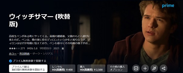 映画「ウィッチサマー 未知の怪物」はAmazonプライムビデオでもフルで視聴することができます。