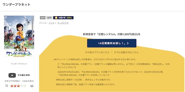 そして、映画「ワンダープラネット」はツタヤディスカスで配信しているので、無料でDVDレンタルが可能です。