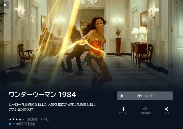 U-NEXTで映画「ワンダーウーマン1984」の動画を無料トライアルでフル視聴