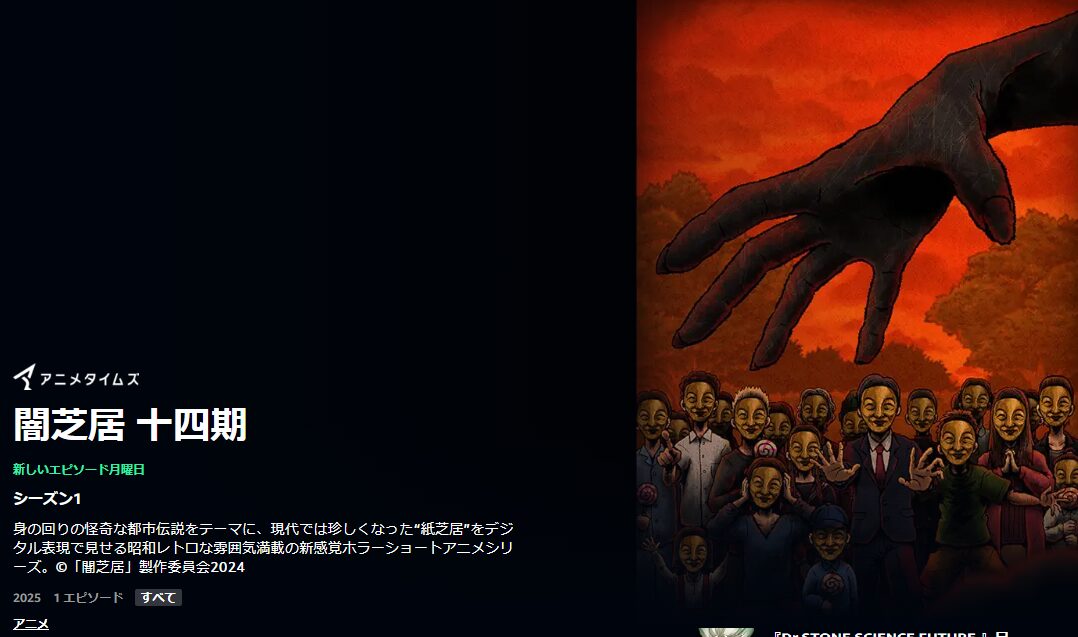 Amazonプライムでアニメ「闇芝居 十四期」の動画を全話無料視聴