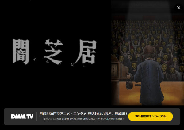 現在、TVerでは「闇芝居 十一期」は視聴出来ませんが、数多くのアニメや映画作品を見ることが出来る『DMMTV』が全話視聴できるのでおすすめです。
