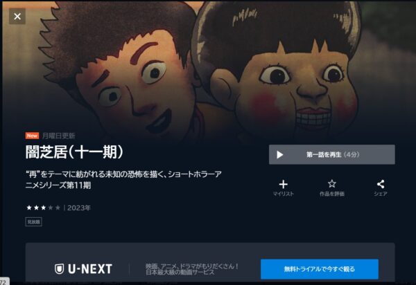 U-NEXTでアニメ「闇芝居 十一期」の動画を全話視聴