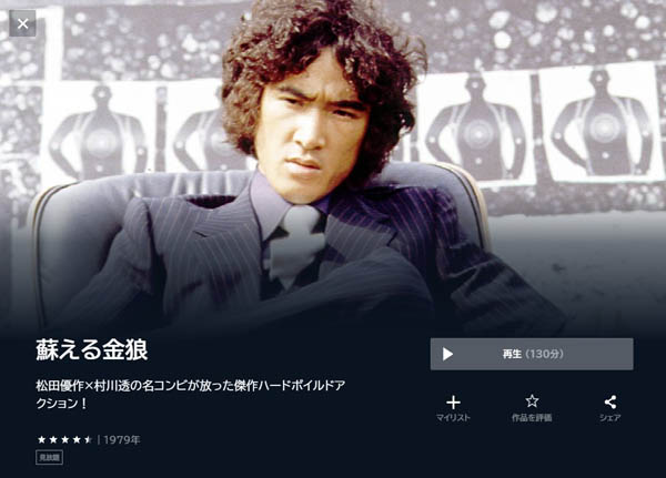 ただ、「蘇える金狼(1979)」の関連作品の映画は配信しております。