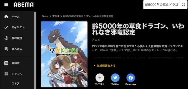 また、ABEMAは独自のオリジナル動画やコンテンツがあり、アニメ「齢5000年の草食ドラゴン、いわれなき邪竜認定」以外も視聴できます。