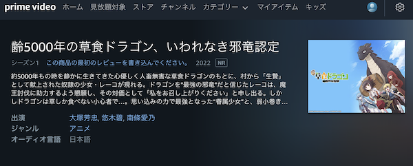 人気の動画配信サイトAmazonプライムでも、アニメ「齢5000年の草食ドラゴン、いわれなき邪竜認定」を視聴できるか調査しました。