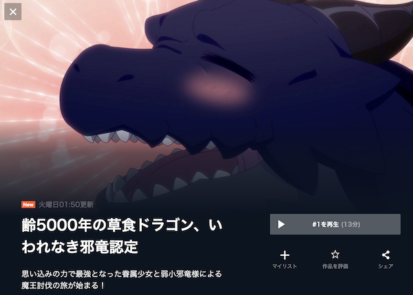 Netflixでアニメ「齢5000年の草食ドラゴン、いわれなき邪竜認定」の動画の配信予定