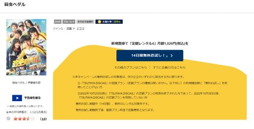 そして、映画「弱虫ペダル」はツタヤディスカスで配信しているので、無料でDVDレンタルが可能です。