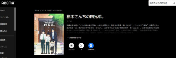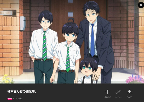 2024年11月現在、「柚木さんちの四兄弟。」のアニメは配信されておりませんでした。