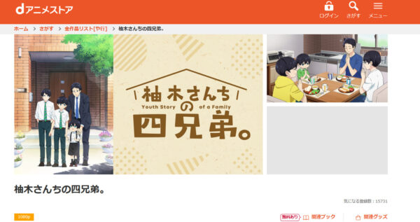 またdアニメストアは、アニメ「柚木さんちの四兄弟。」のシリーズや関連動画を全話視聴できます。