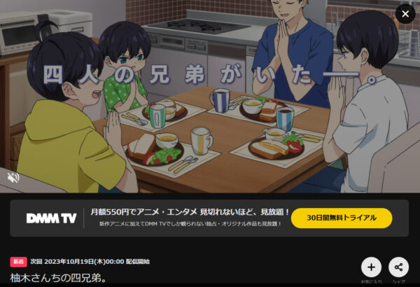 そんなDMMTVで、アニメ「柚木さんちの四兄弟。」が配信しているか調査しました。