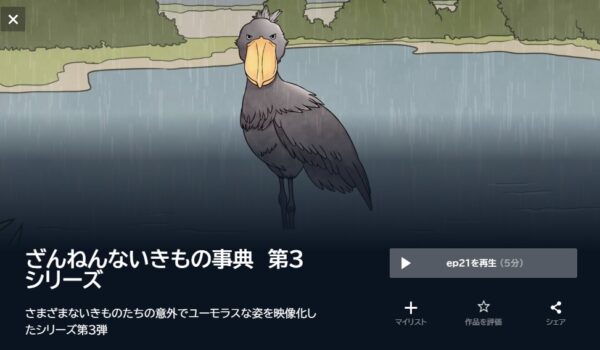 Netflixでは、アニメ「ざんねんないきもの事典 第3シリーズ」は配信されていませんでした。