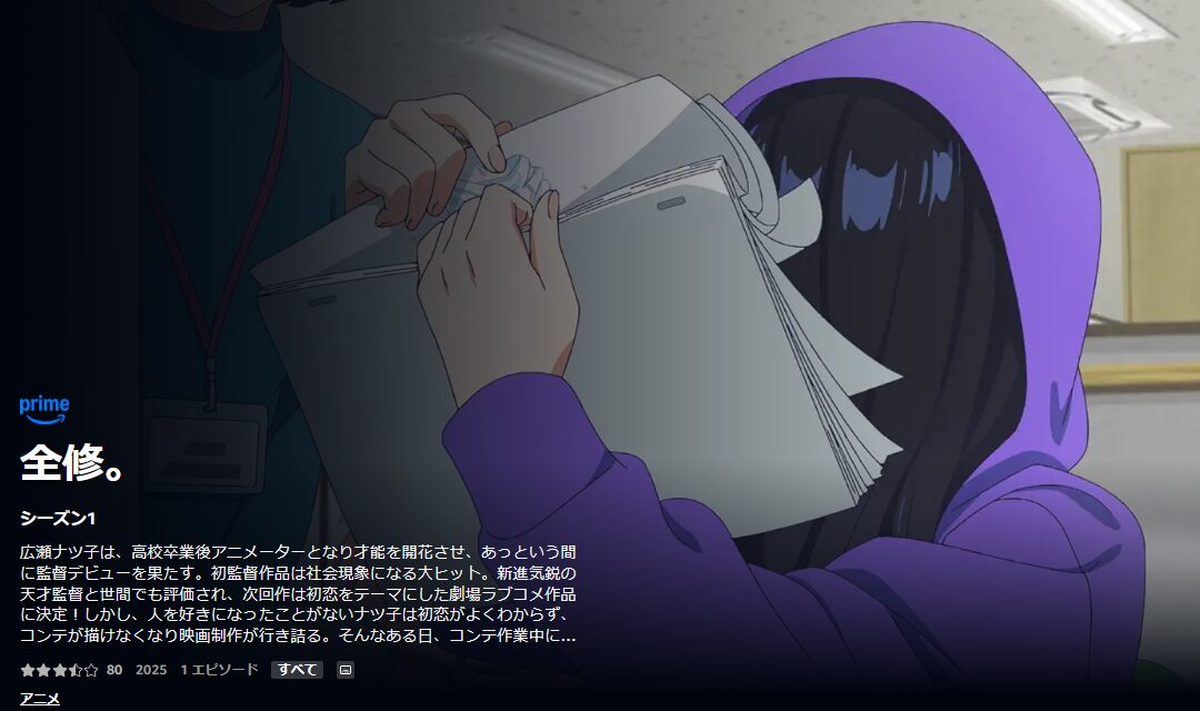 人気の動画配信サイトAmazonプライムでも、アニメ「全修。」を視聴できるか調査しました。