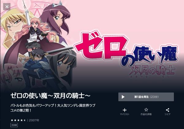 初回お試し期間が30日間あり、アニメ「ゼロの使い魔〜双月の騎士〜(2期)」の配信もありフルで見ることができます。