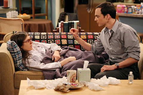 シェルドンはエイミーと葬式に出席するため家に迎えに行くと、エイミーはインフルエンザで寝込んでいた。すぐに帰ろうとするシェルドンだったが、「恋人協定」で約束していたため、エイミーの看病をすることになる。