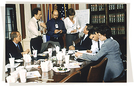 外交問題、経済問題から差別問題、ドラッグの問題など、現代アメリカが抱える全ての問題が集中するホワイトハウスのスタッフには気の休まるときがない。また、バートレット政権が出した銃規制法案、銀行法案、国税調査についての法案など、数々の法案を通過させるために、反対派の共和党議員を政治的な駆け引きを用いて説得したり、反りが合わないホインズ副大統領に頭を下げてでも力を借りて根回ししたりなど、時には汚れ仕事のようなこともやらなくてはならないのだ…。