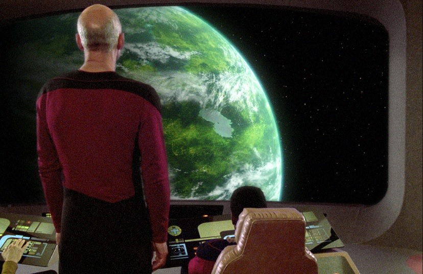 『宇宙――そこは最後のフロンティア。これは宇宙戦艦エンタープライズ号が、新世代のクルーのもとに24世紀において任務を続行し、未知の世界を探索して新しい生命と文明を求め、人類未到の宇宙に勇敢に航海した物語である』――オープニング・ナレーションよりカーク船長やミスター・スポックたちエンタープライズ号のクルーによる、伝説の調査航海から約1世紀後の24世紀。地球を中心とする150の文明圏で構成される惑星間同盟“惑星連邦”は宇宙艦隊を組織、未知宇宙の探査と連邦の防衛・パトロールに当たらせていた。そして今、誇り高き名前を受け継ぐ新造艦エンタープライズDが調査飛行に出航する。エンタープライズDは初代より大きく、全長は2倍以上に、内部スペースは8倍にもなっている。乗組員にはクルーの家族、子供も含まれており、総勢2000人を数える。