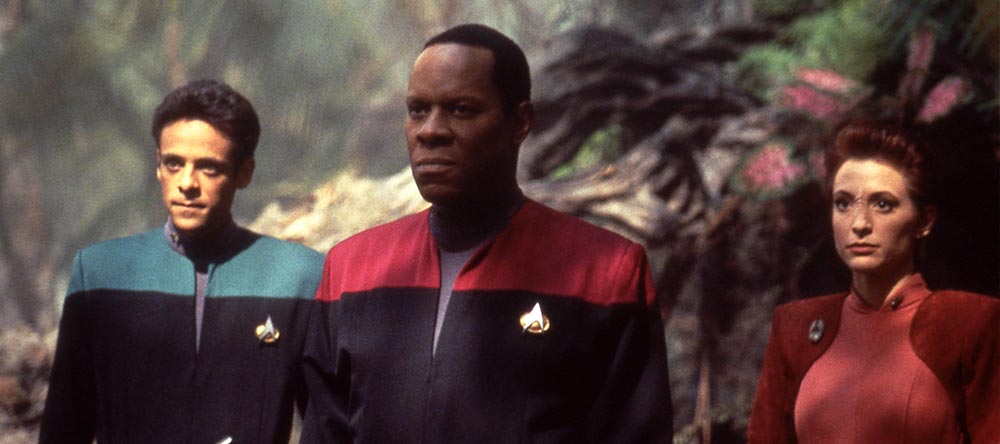 24世紀初頭。辺境の惑星ベイジョーは、近くでワーム・ホール(銀河系を結ぶトンネル状の近道)が発見されたため、銀河の果ての、未踏の地への入り口として戦略的重要拠点となった。30年あまりの間、カーデシア人の侵略を受けた惑星ベイジョーの人々は、壮絶な戦闘の末、彼らを撃退した。しかし、その美しかった国土は焦土と化し、資源は全て搾取され、惑星内の情勢は不安定であった。