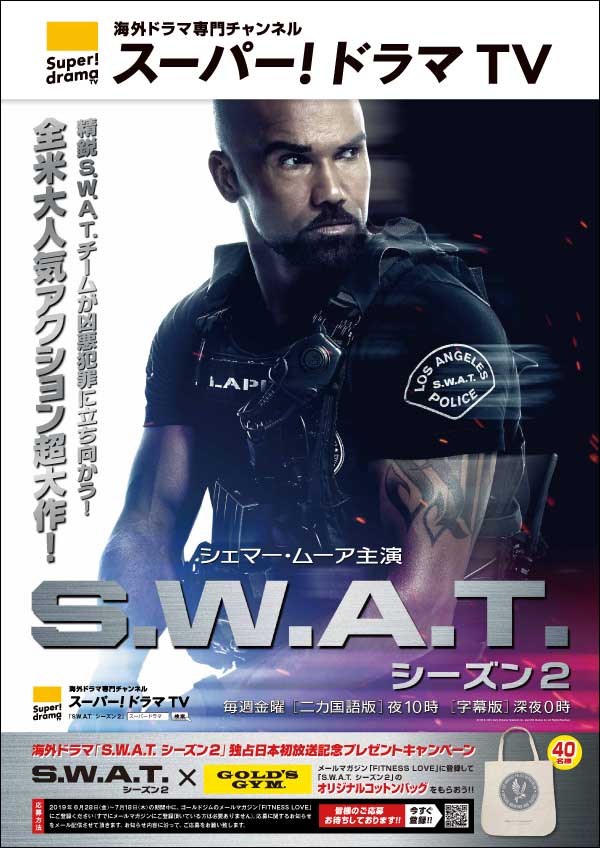 「S.W.A.T. シーズン2」独占日本初放送を記念して、アメリカ発祥の世界最大級のネットワークをもつフィットネスクラブ「ゴールドジム」とのタイアップが決定!放送開始日の6月28日(金)より全国直営62店舗でのポスター掲出とプレゼントキャンペーンを実施します!